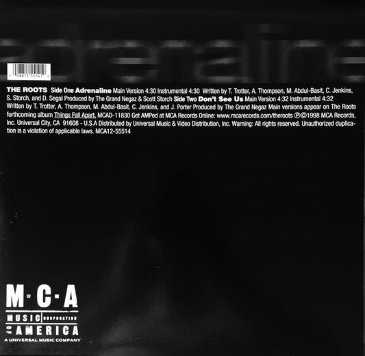 The Roots - Adrenaline / Don't See Us (12", Single) (Very Good Plus (VG+))