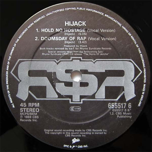 Hijack - The Badman Is Robbin' / Hold No Hostage / Doomsday Of Rap (12") (Very Good Plus (VG+))