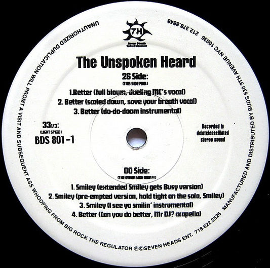 The Unspoken Heard - Better / Smiley (12") (Very Good Plus (VG+))