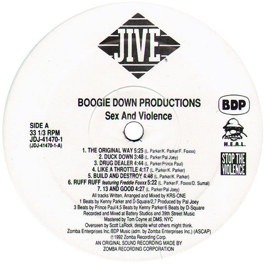 Boogie Down Productions - Sex And Violence (LP, Album, Promo) (Very Good Plus (VG+))