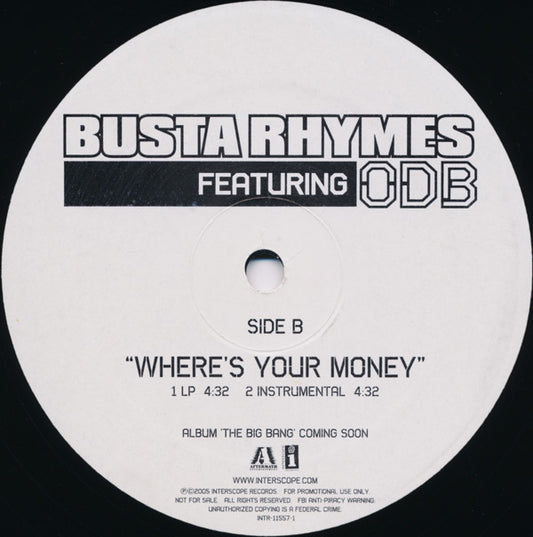 Busta Rhymes Featuring ODB* - Where's Your Money (12", Promo) (Very Good Plus (VG+))