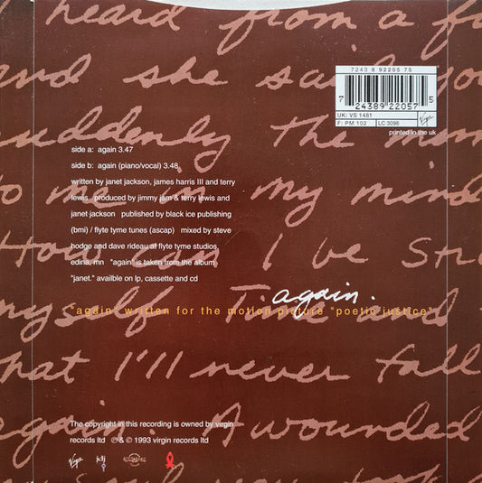 Janet Jackson - Again (7", Single) (Very Good Plus (VG+))