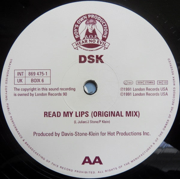 ℗ 1991 London Records USA © 1991 London Records USA The copyright in this sound recording is owned by London Records 90 A2 Remixed, Edits & additional production [... for I-D Productions. Catalog numbers listed on sleeve and labels with INT (869 475-1) and UK (BOIX 6) prefixes.